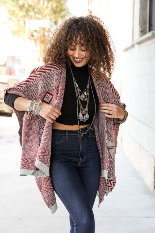 ndie Folk Style Multi Pattern Ruana