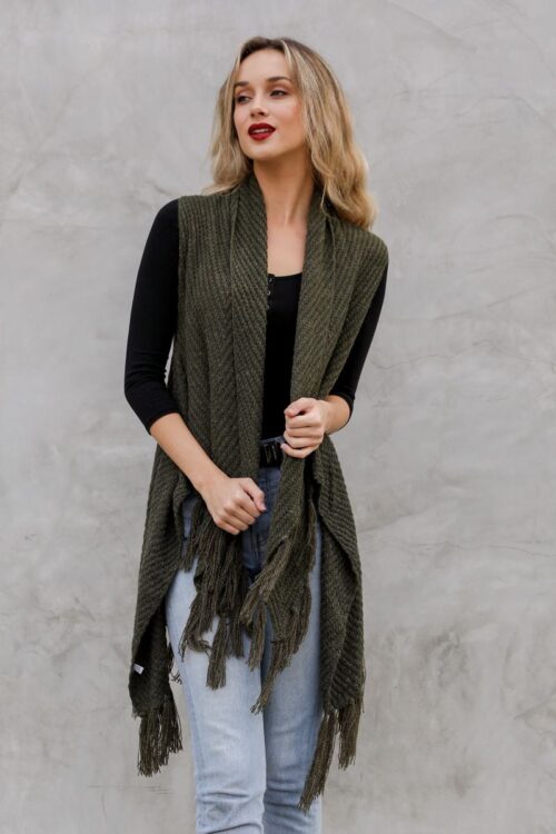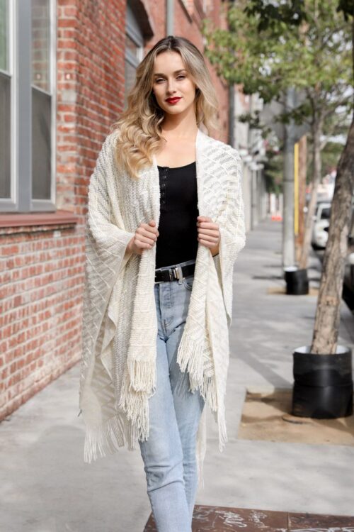 Soft Diagonal Knit Tassel Trim Ruana